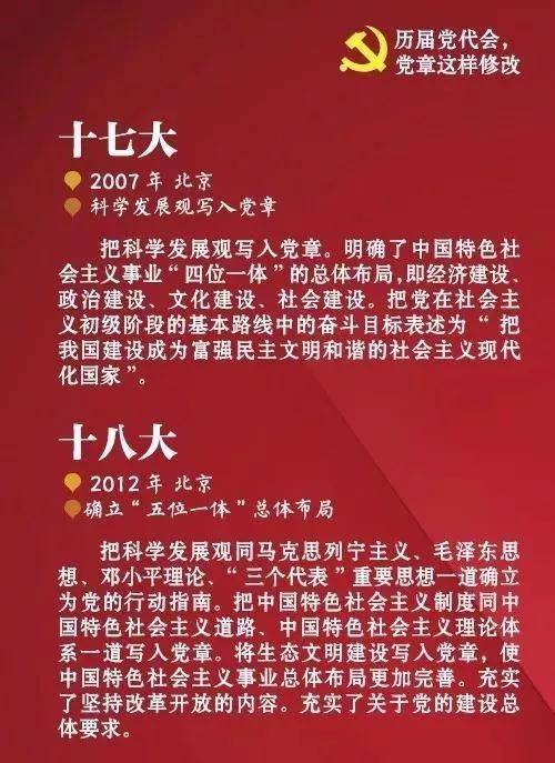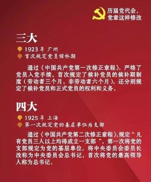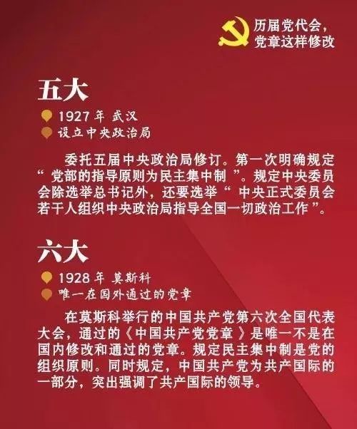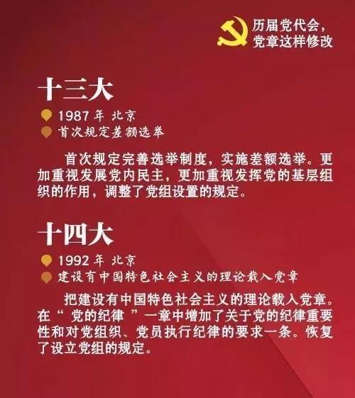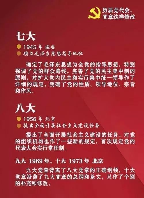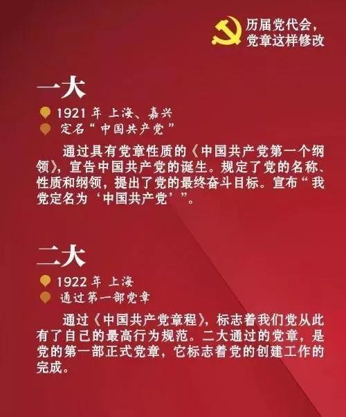 中国共产党自1921年诞生至今,已先后制定、修正过多次党章,此前历届党代会的党章都如何修改?看图了解↓↓