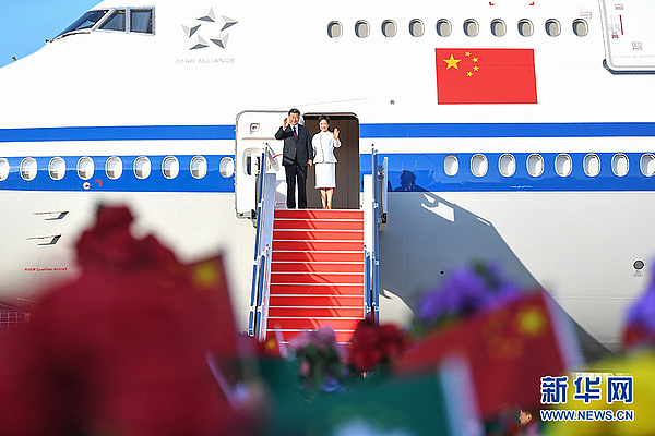 中共中央政治局委员、中央书记处书记、中央办公厅主任丁薛祥,中共中央政治局委员、全国人大常委会副委员长王晨,中共中央政治局委员、中央军委副主席张又侠,全国政协副主席马飚等陪同人员同机抵达。国务委员兼外交部长王毅先期抵达。